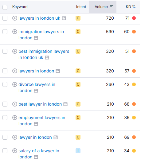 These keywords tell Google that the person is looking for a lawyer in a specific area.