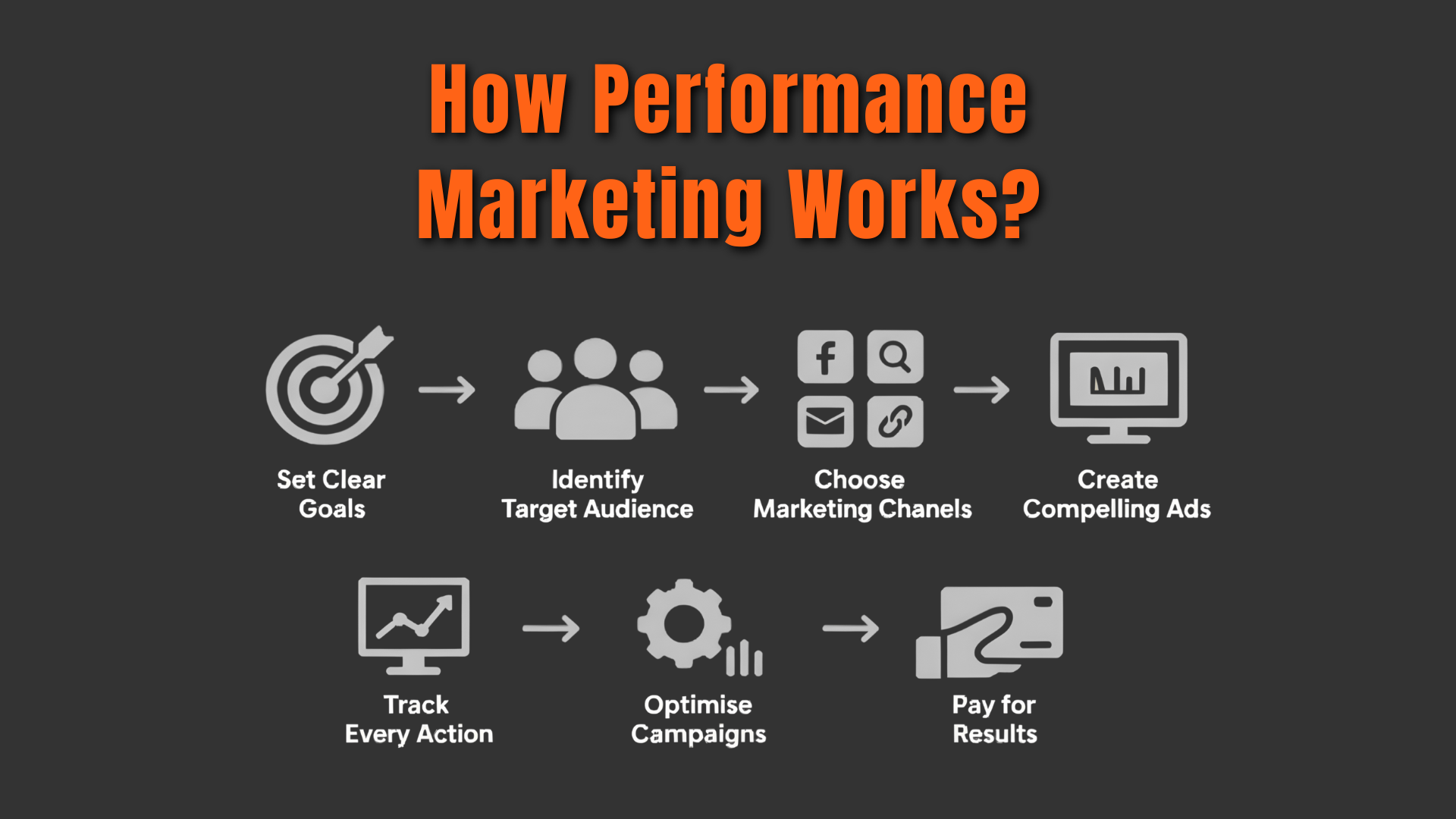 Performance marketing is a pay-for-results approach to digital advertising. Here’s how it works step-by-step: